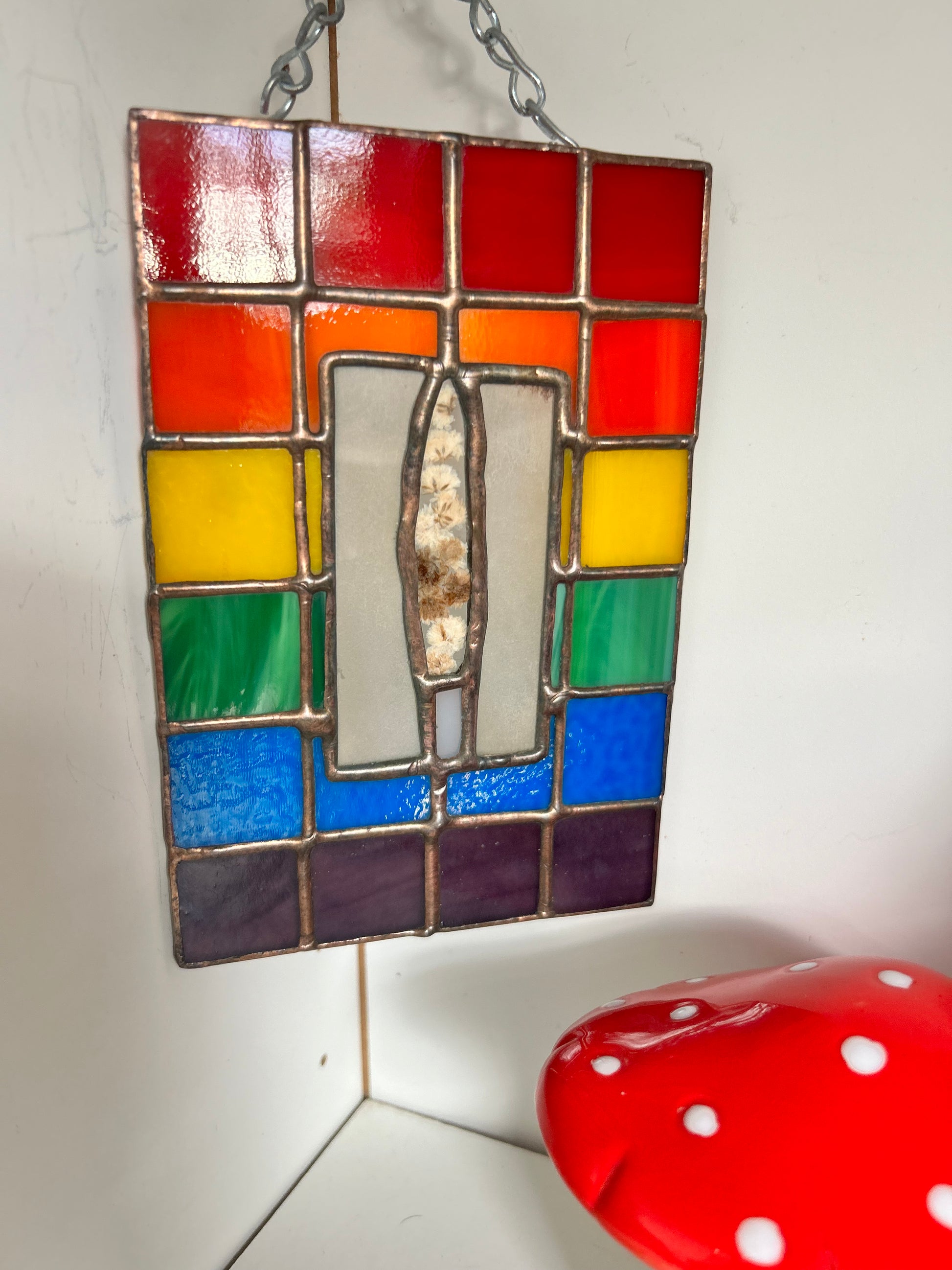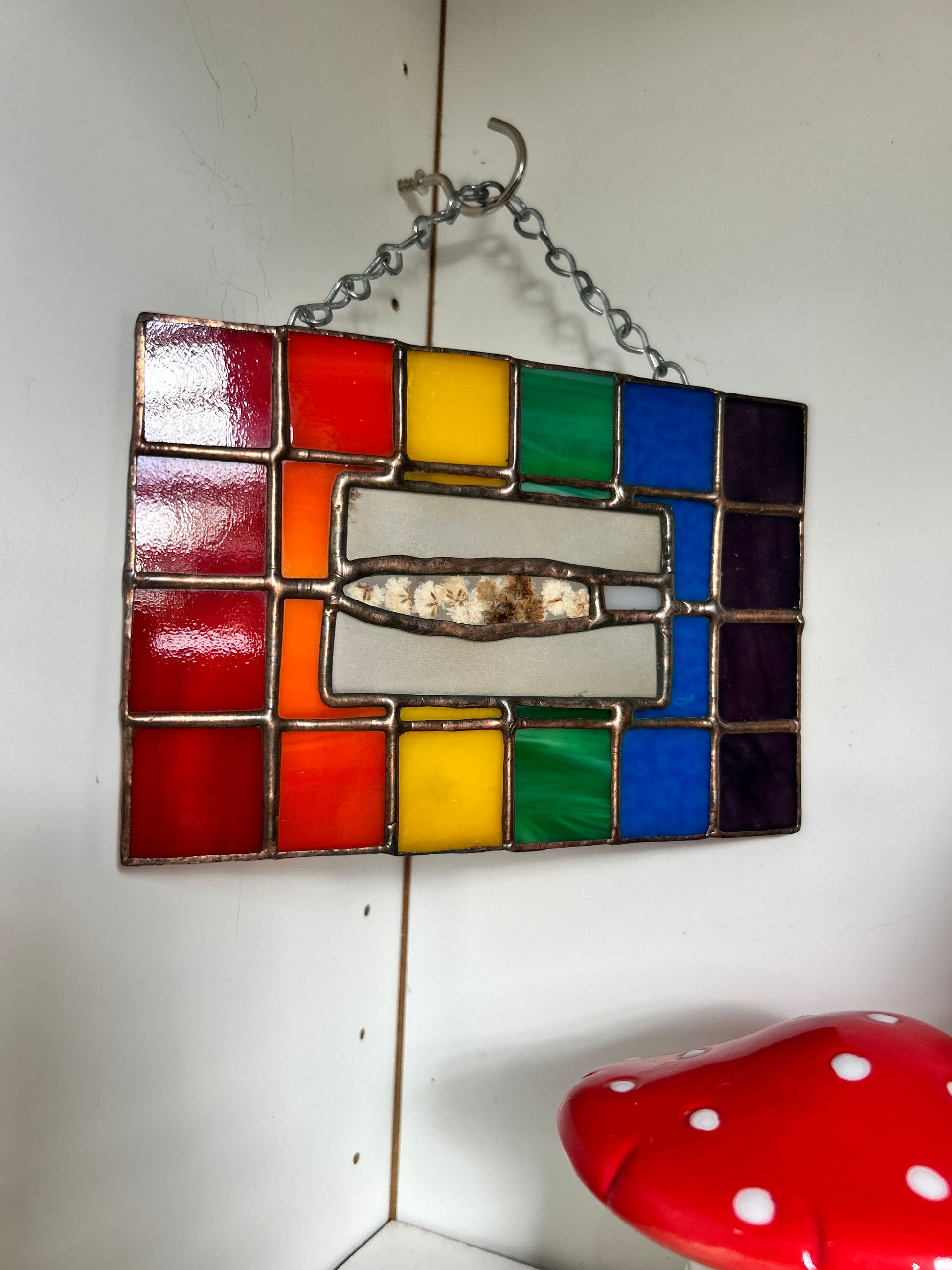 Join+ en vitral con Flores prensadas. Tamaño 6x4”.